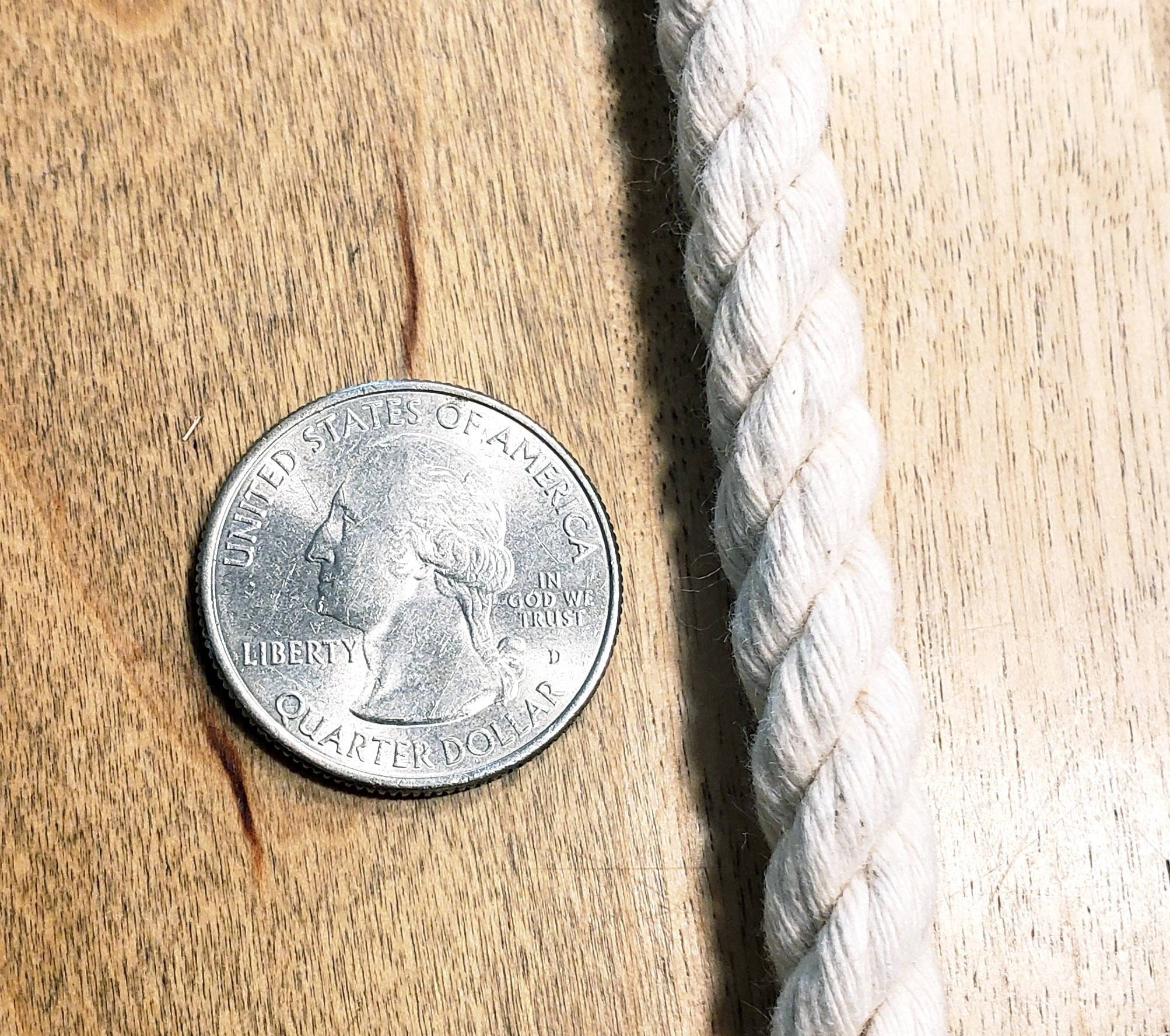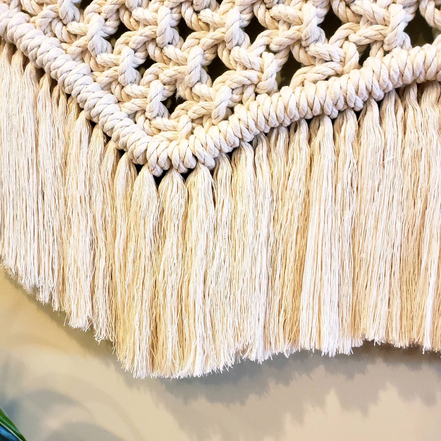 Using 8mm cotton cord, this is a significant piece, weighting over 5.5 pounds. Please see the last picture for an approximate width guage.