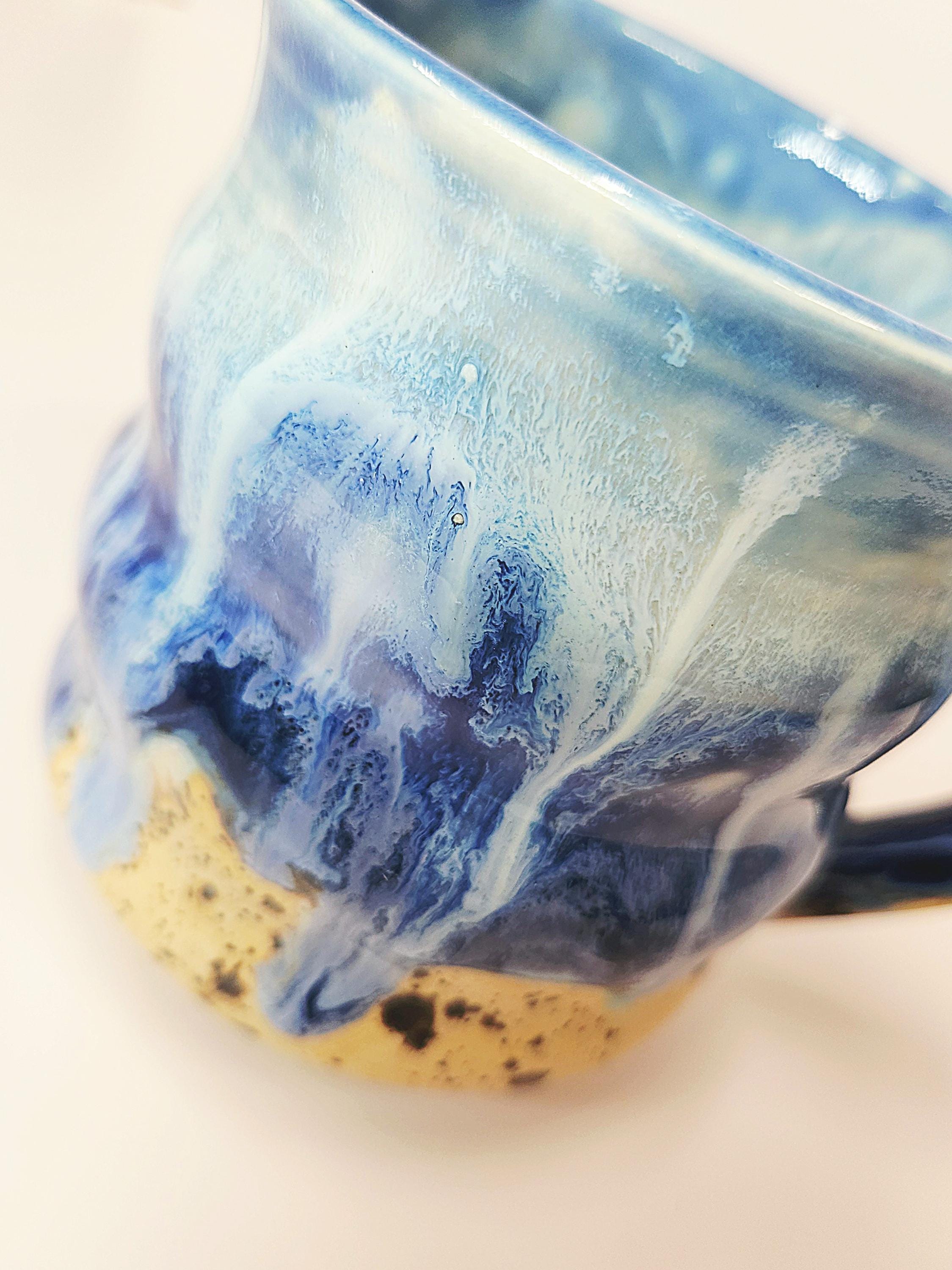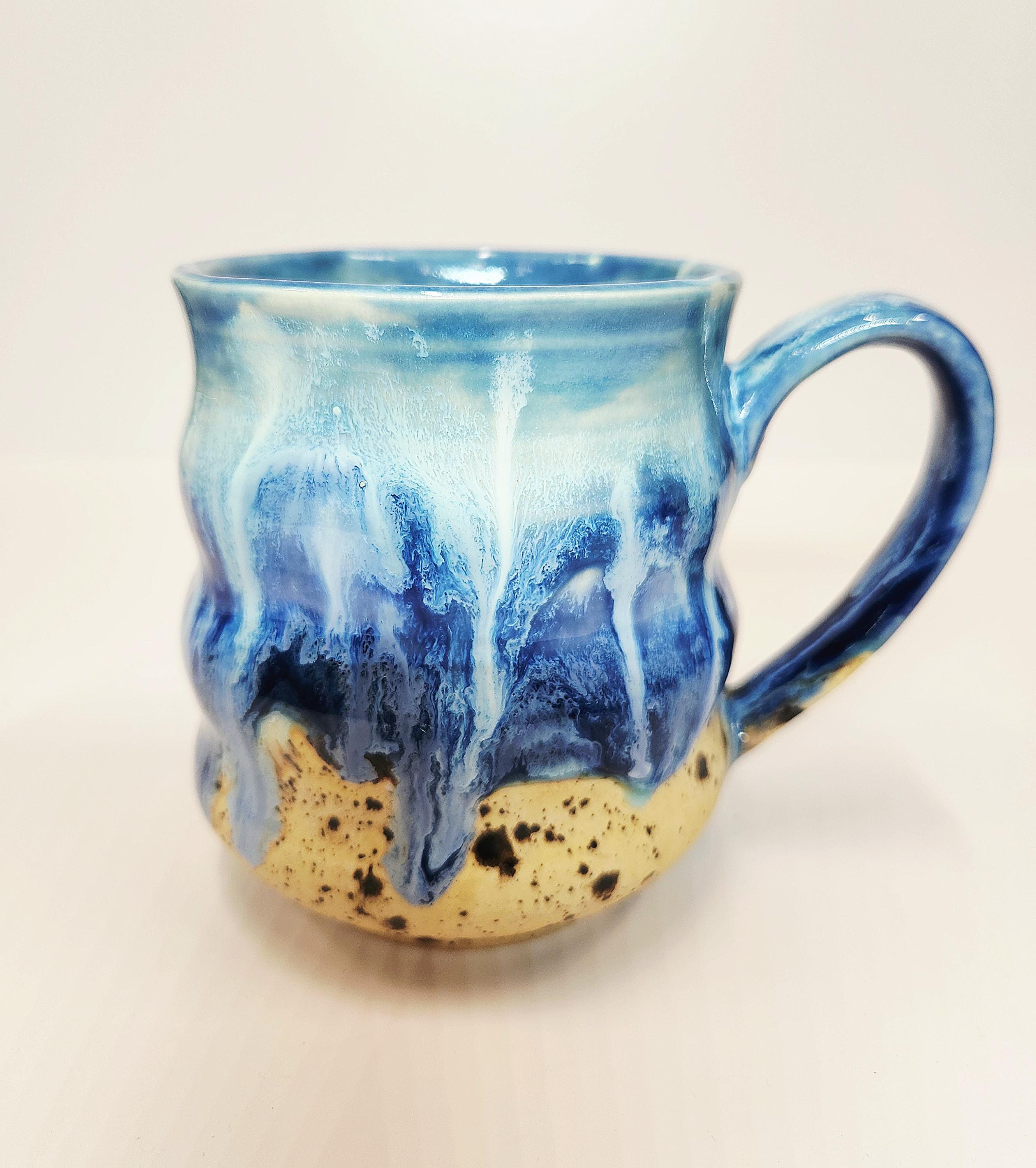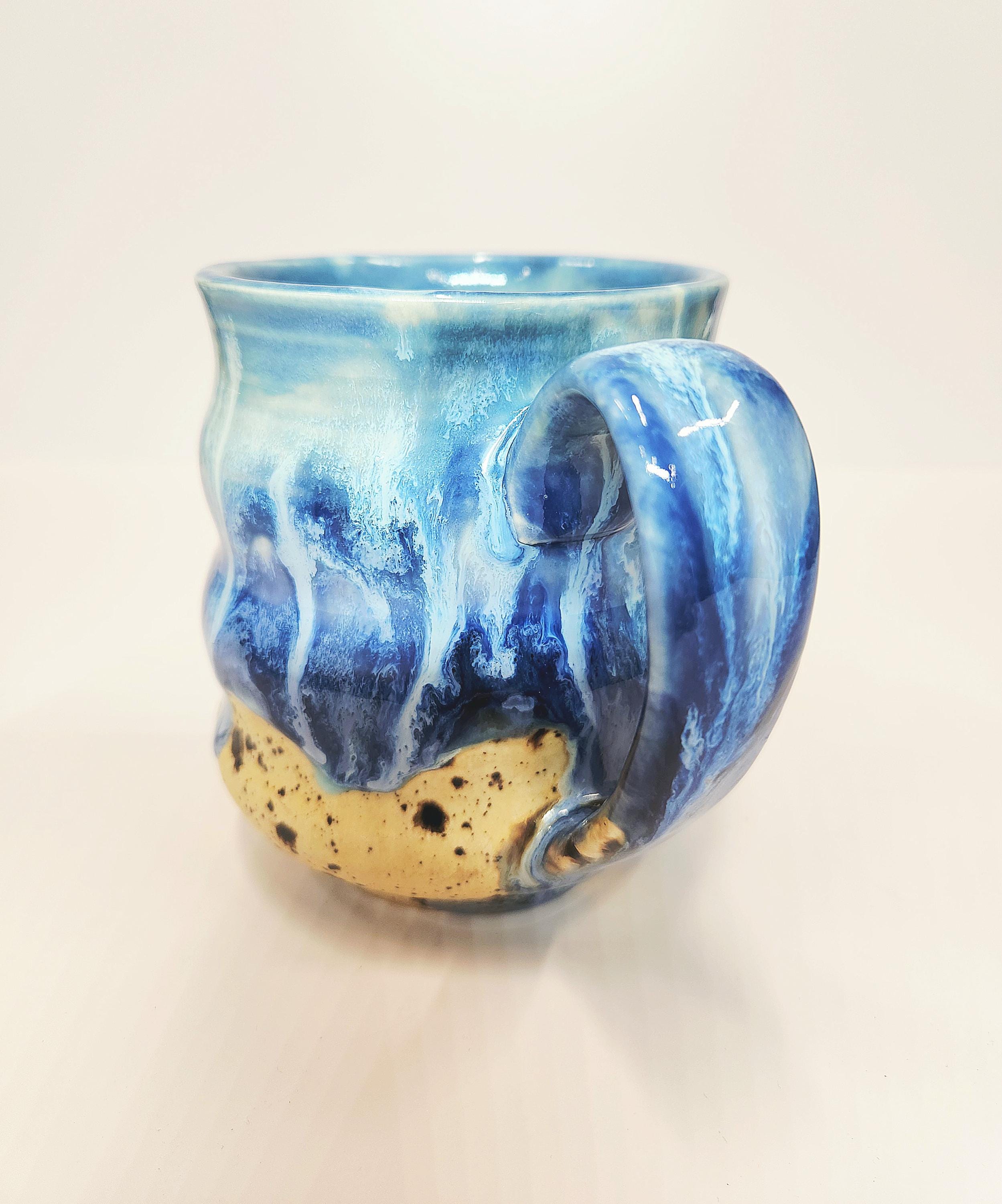 Each of these uniquely crafted ceramic pottery mugs boasts a distinctive drip glaze finish, rendering them truly one of a kind. When I initially embarked on this finishing technique, I've employed six to seven different glazes, gradually increasing the number to nine. Presently, I utilize a range of eleven to thirteen distinct colors and types of glazes for each mug, using various application techniques. These mugs consistently exceed expectations and promise they won't disappoint.