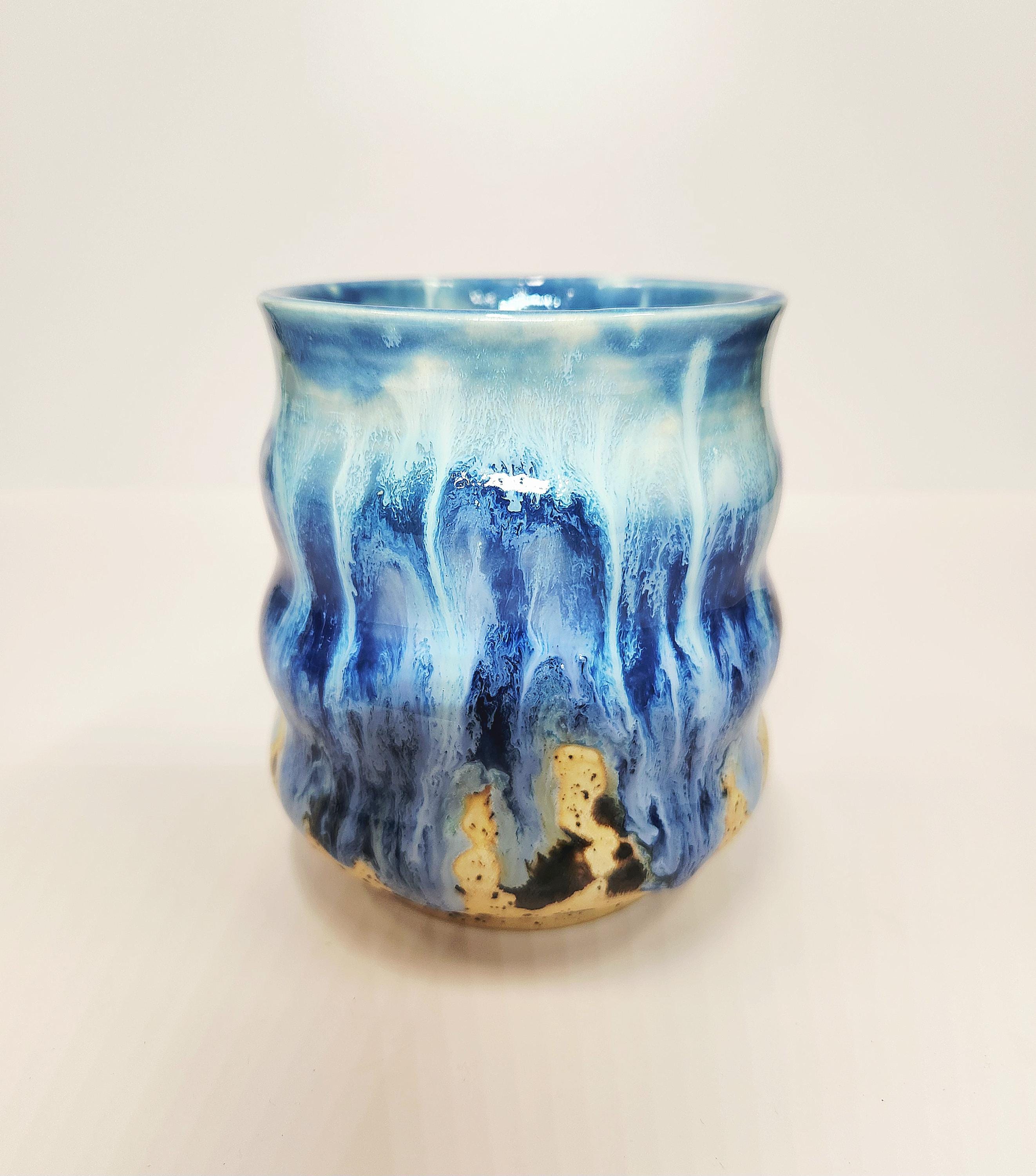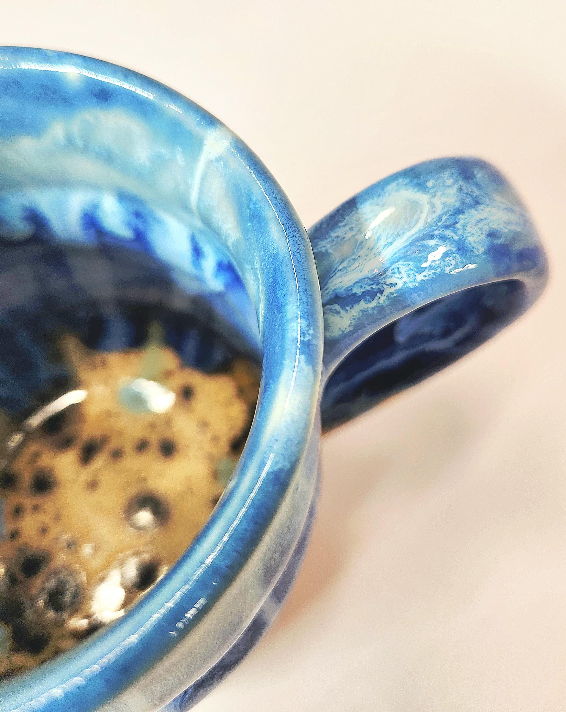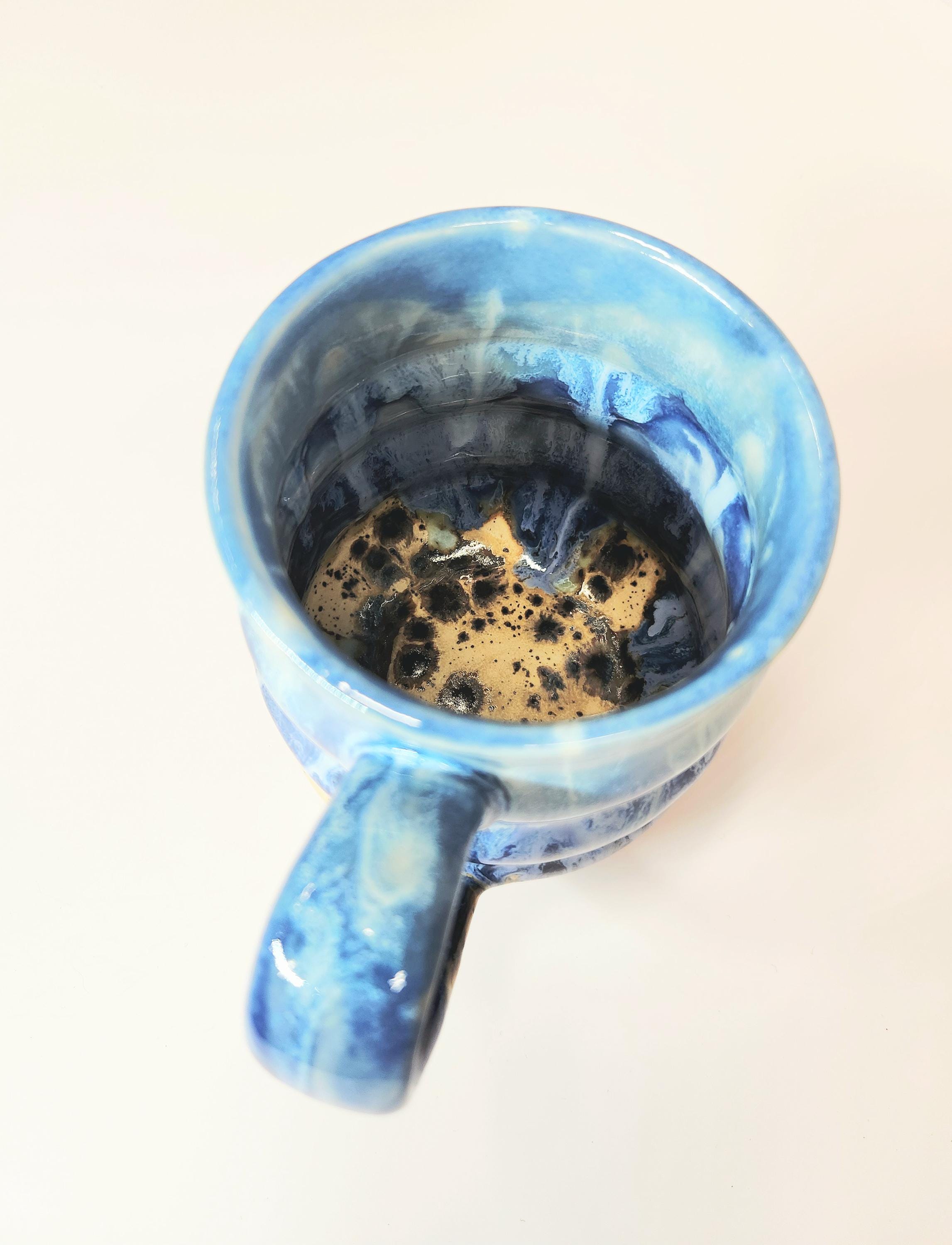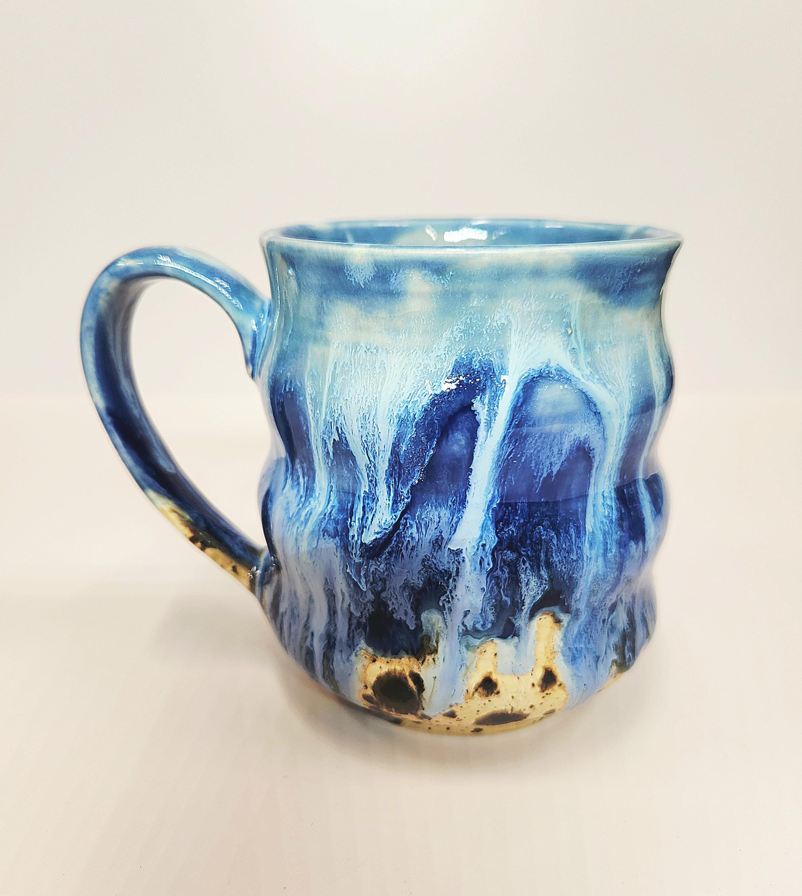 Each of these uniquely crafted ceramic pottery mugs boasts a distinctive drip glaze finish, rendering them truly one of a kind. When I initially embarked on this finishing technique, I've employed six to seven different glazes, gradually increasing the number to nine. Presently, I utilize a range of eleven to thirteen distinct colors and types of glazes for each mug, using various application techniques. These mugs consistently exceed expectations and promise they won't disappoint.
