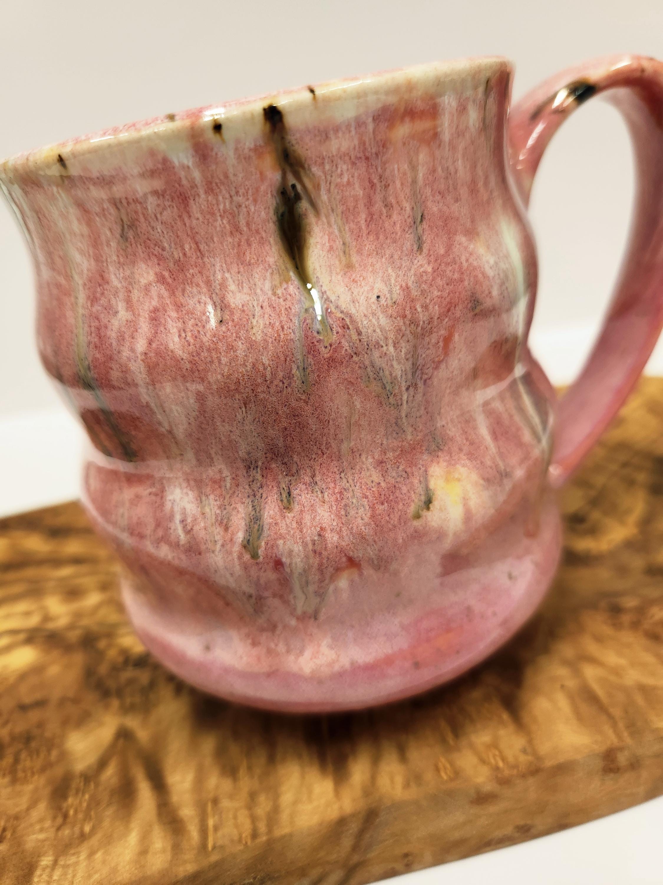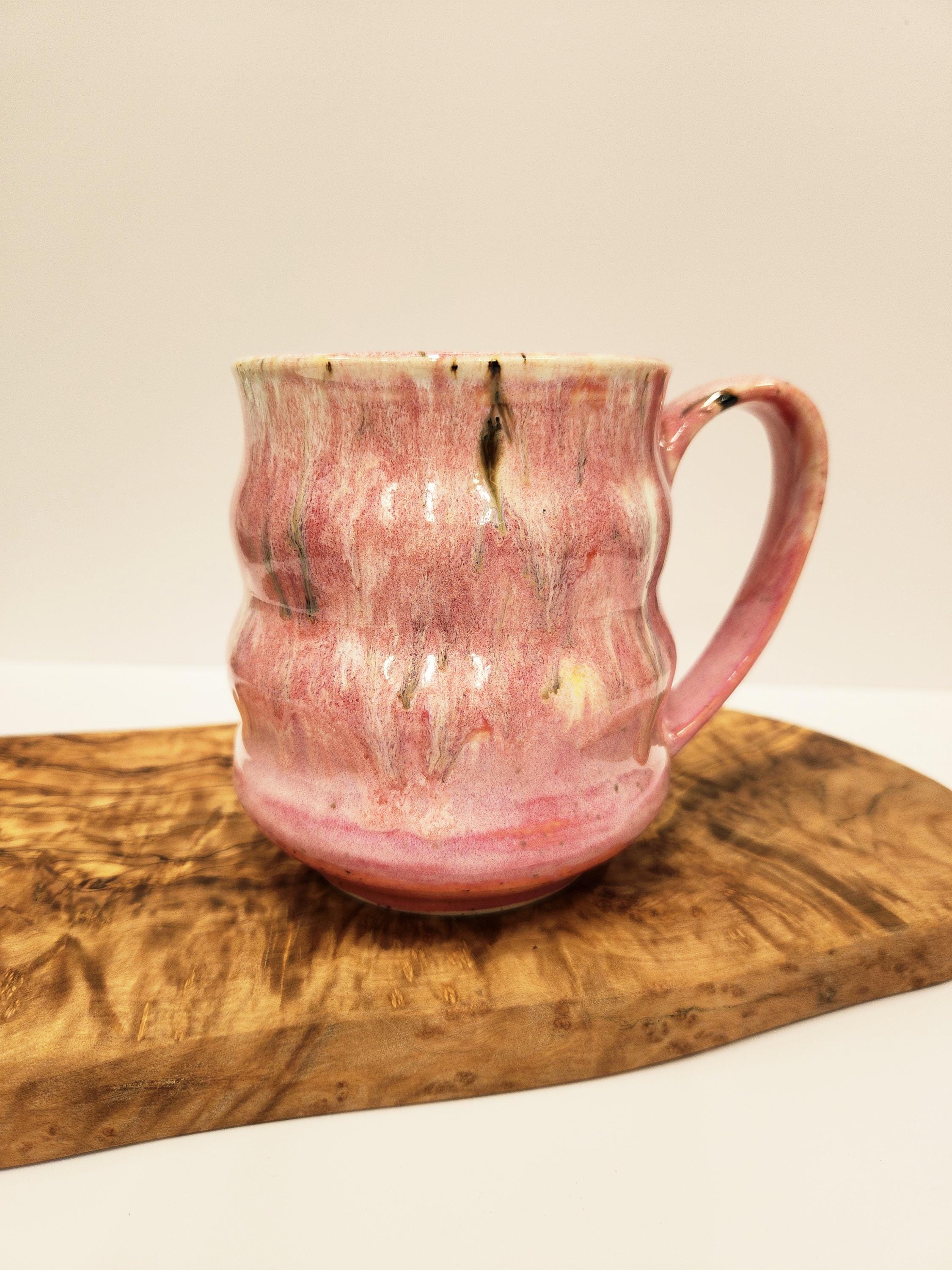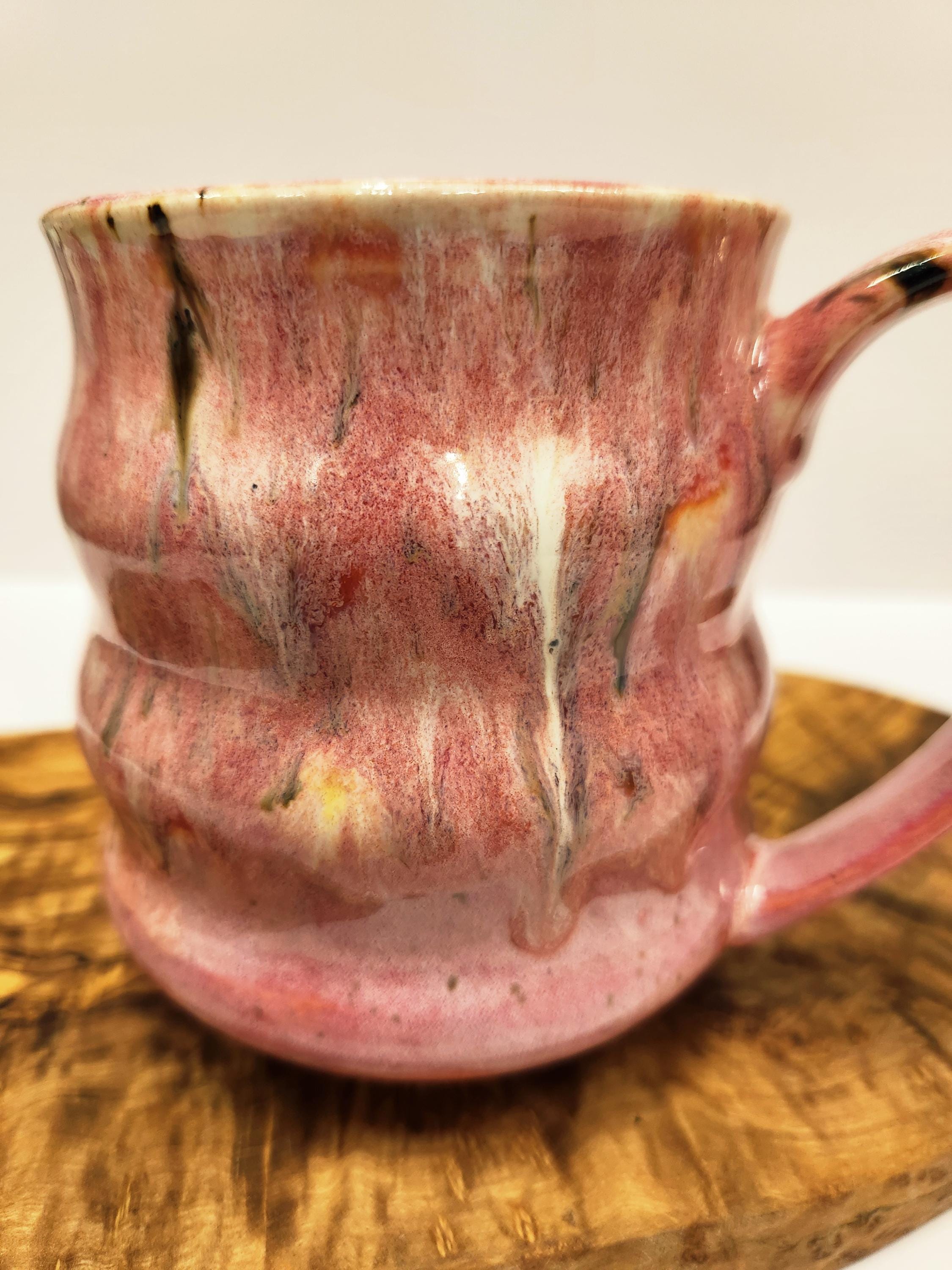 Each of these uniquely crafted ceramic pottery mugs boasts a distinctive drip glaze finish, rendering them truly one of a kind. When I initially embarked on this finishing technique, I've employed six to seven different glazes, gradually increasing the number to nine. Presently, I utilize a range of eleven to thirteen distinct colors and types of glazes for each mug, using various application techniques. These mugs consistently exceed expectations and promise they won't disappoint.