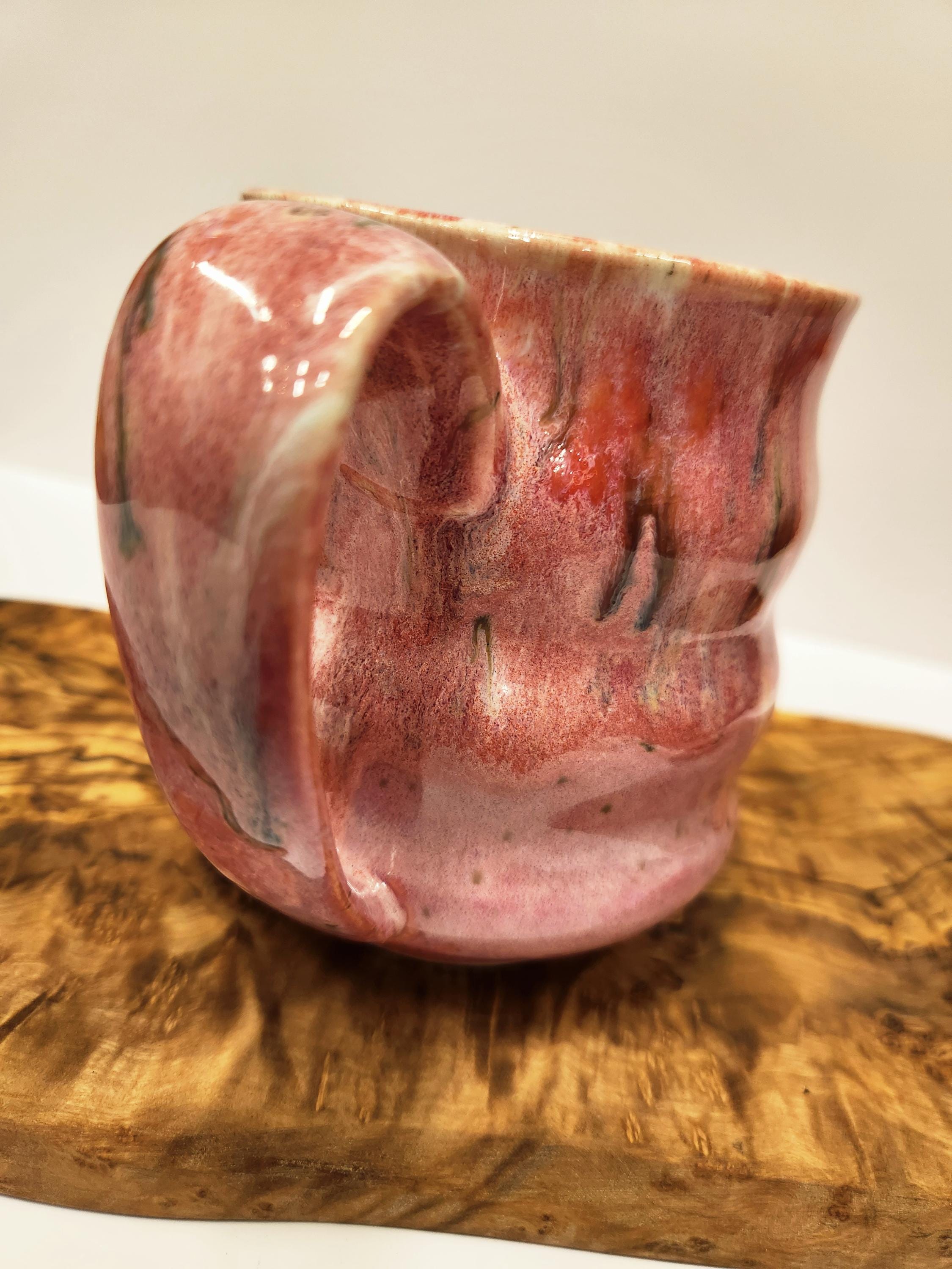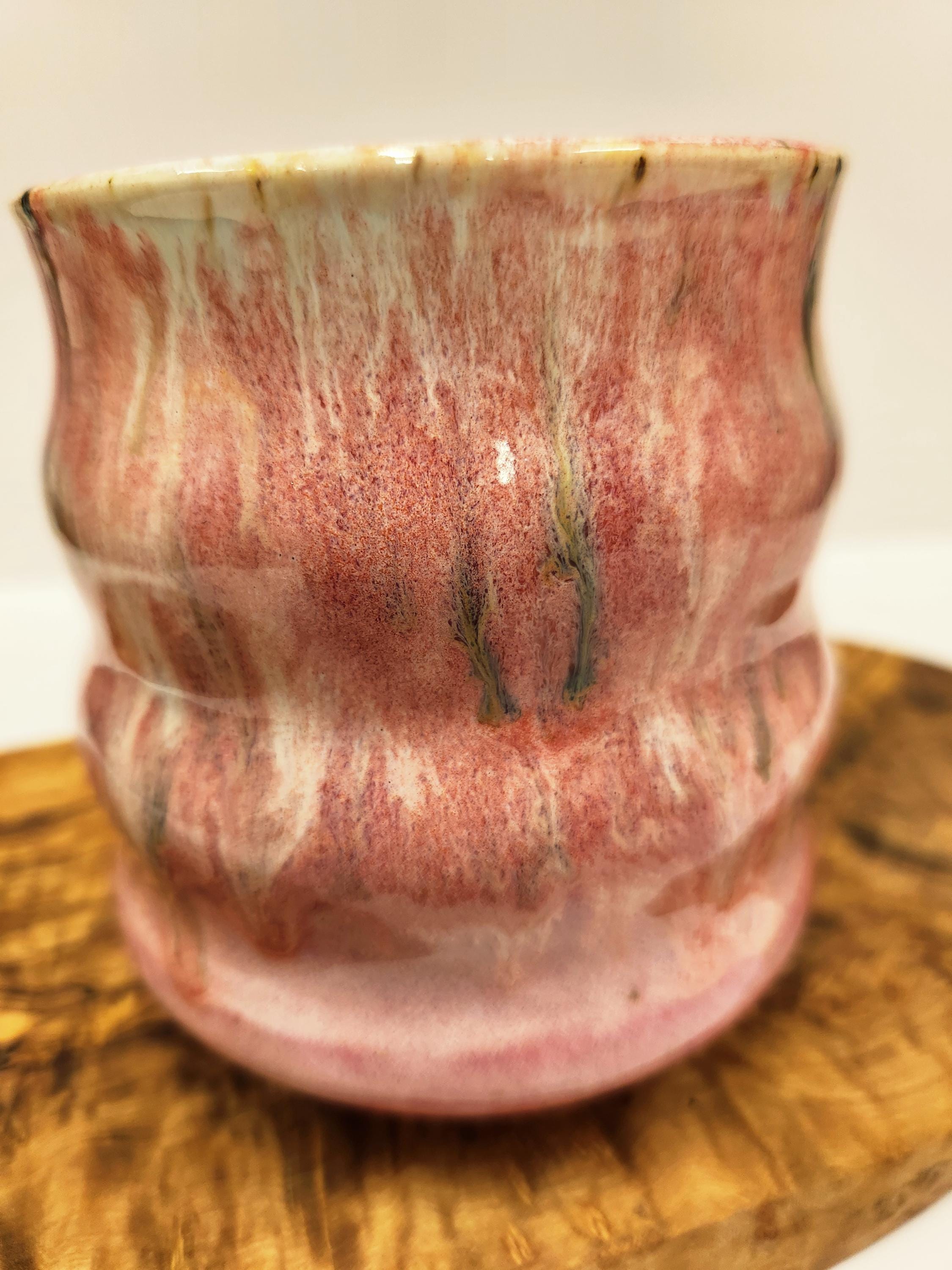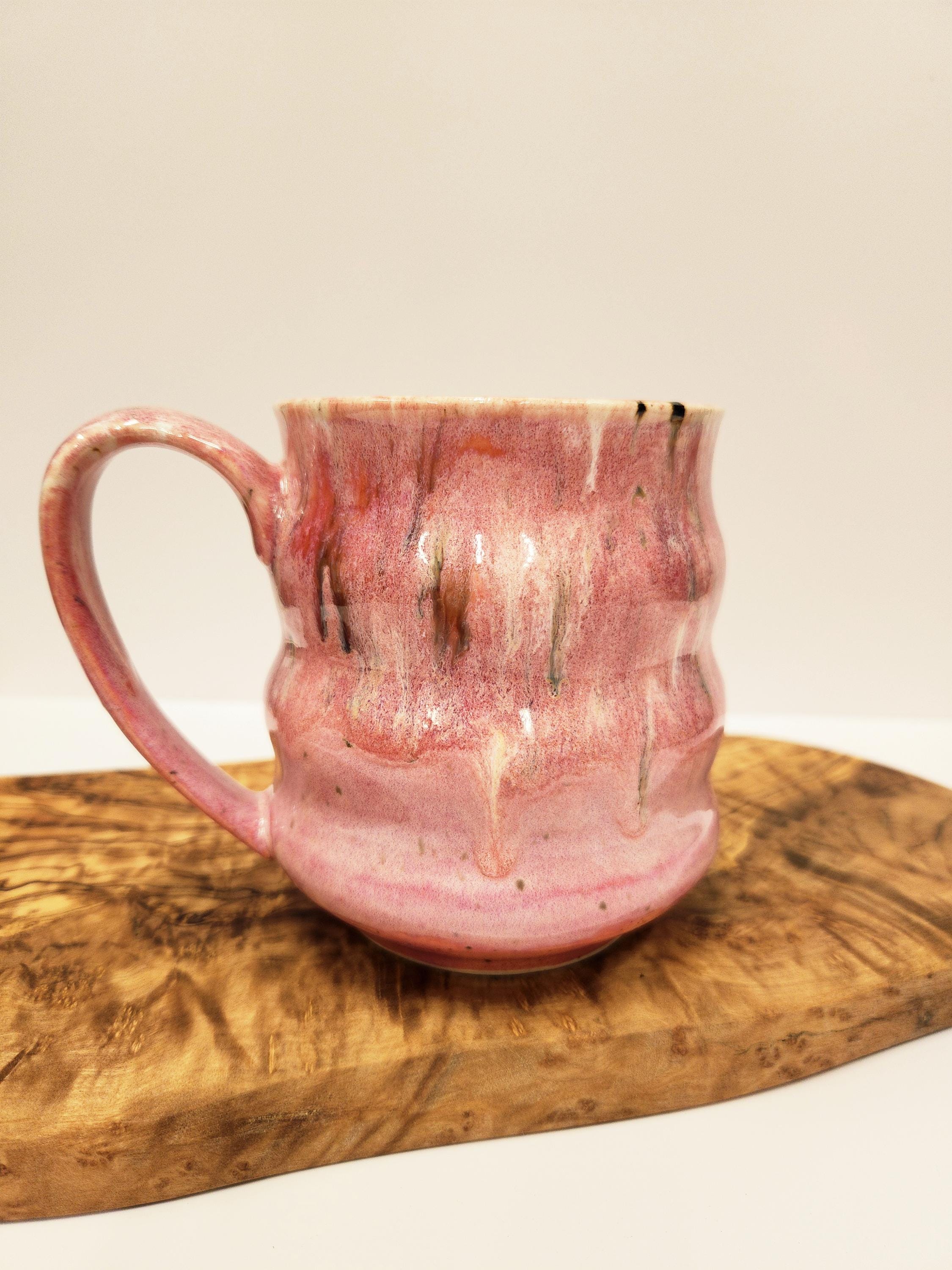 Each of these uniquely crafted ceramic pottery mugs boasts a distinctive drip glaze finish, rendering them truly one of a kind. When I initially embarked on this finishing technique, I've employed six to seven different glazes, gradually increasing the number to nine. Presently, I utilize a range of eleven to thirteen distinct colors and types of glazes for each mug, using various application techniques. These mugs consistently exceed expectations and promise they won't disappoint.